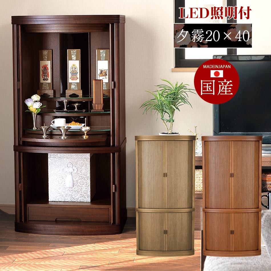 【送料無料】 夕霧 【20×40号】 収納仏壇 床置き LED照明 仏壇 モダン モダン仏壇 収納 下台 上台 セット 台付き 床置き仏壇 お洒落 デザイン仏壇 インテリア 上下セット リビング仏壇