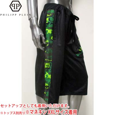 フィリッププレイン PHILIPP PLEIN メンズ ボトムス ショーツ ハーフパンツ ジャージ setup可(トップス別) カモ柄スカル/サイドライン・バックロゴ入りショーツ 黒 SS14 HM641621 02 black (R55500) 【送料無料】【楽ギフ_包装】【smtb-tk】 WA14S