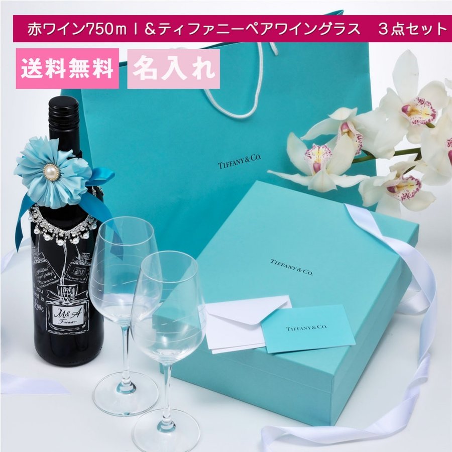 送料無料 ティファニー ワイングラス 結婚祝い 名入れ ペア ペアグラス 食器 カデンツ ワイン 赤ワイン フルボトル750mlセット3点セット